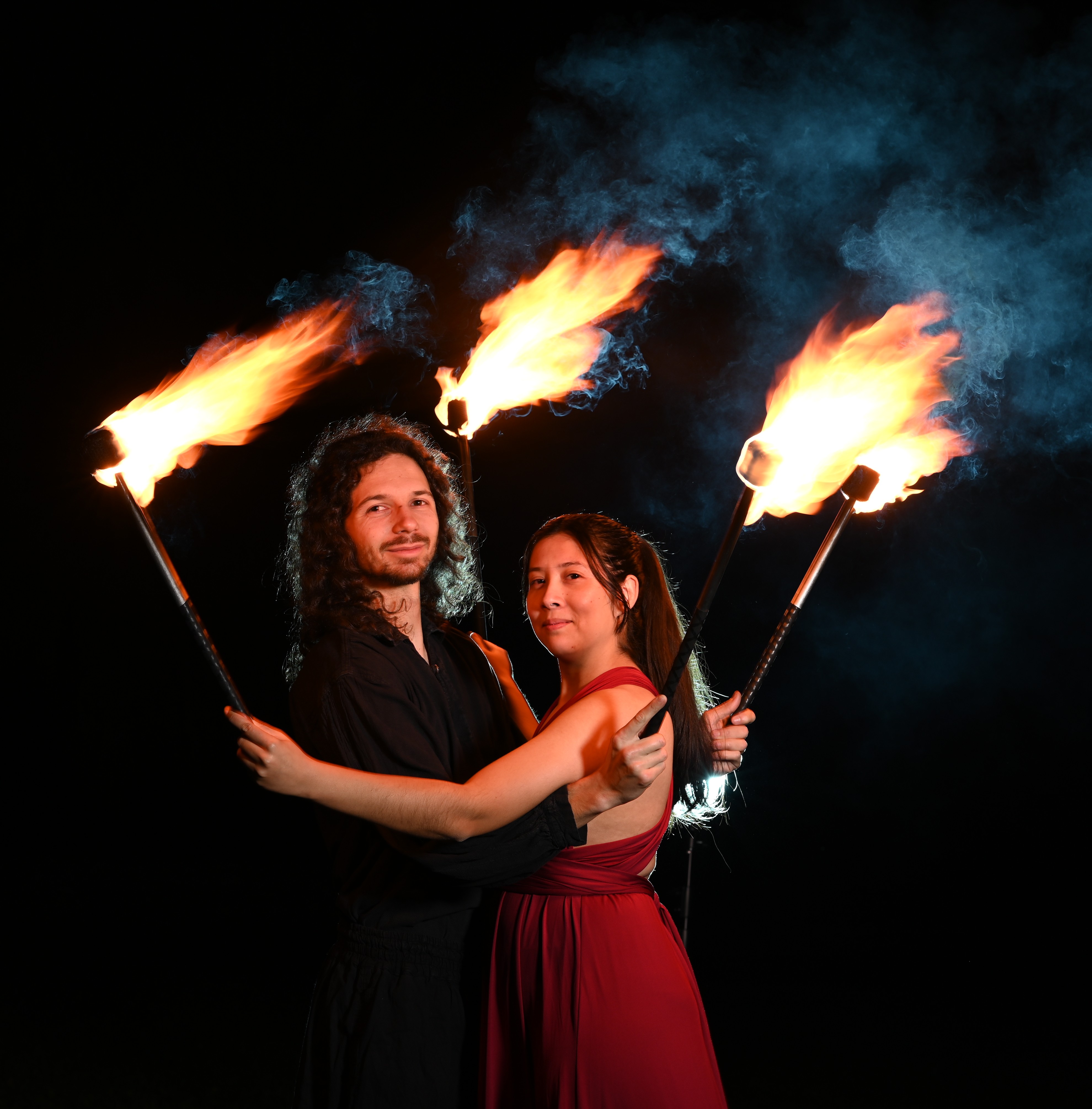 Deux ou trois jongleurs investissent l’espace pour un moment court et percutant où le feu est à l’essentiel : maîtrisé, visuel, hypnotique. Sans scénario ni paroles, le spectacle se déploie sur une création musicale, laissant toute la place au mouvement, à la précision et à la beauté des flammes. La performance se conclut par une mini touche pyrotechnique qui marque les esprits sans alourdir la forme.